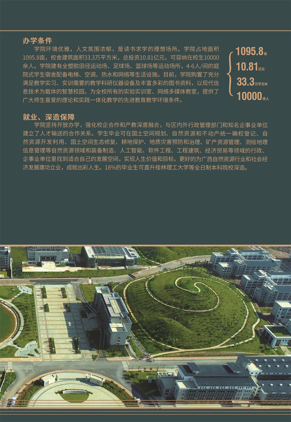 学院秉承“立德树人、求实创新”的校训,坚持“以服务为宗旨,就业为导向,走产学研结合发展道路”的办学方针,立足广西,面向东盟,服务“一带一路”,以培养生产、建设、管理、服务第一线所需的高素质应用型人才为目标,打造具有自然资源特色、南国边关特色、民族区域特色的高素质技术技能人才培养高地和创新服务平台,培养新时代中国特色社会主义事业合格建设者和可靠接班人。