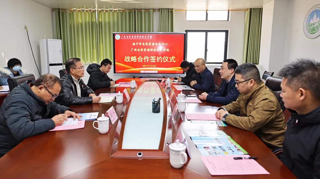 1月14日上午,南宁市自然资源信息中心与广西自然资源职业技术学院的战略合作签约仪式,在学院行政楼举行。