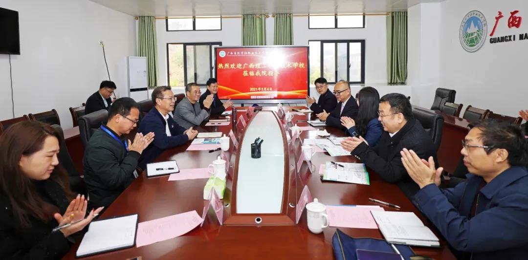 2021年3月4日上午,自治区工信厅人事教育处处长沙肖岩,及广西理工职业技术学校校长杨山、党委书记农荣等一行,来到广西自然资源职业技术学院交流,并参观了学院校园的各项设施。