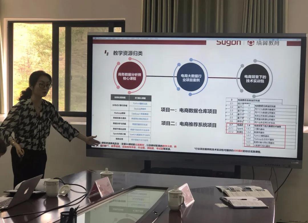 座谈会上,双方针对“数据科学与大数据技术”在电商产业应用项目进行了座谈,围绕大数据技术演变周期、紧盯社会潮流和产业链需求、电商大数据应用等方面在人才培养、专业共建、应用型科研协同创新上进行了探讨。