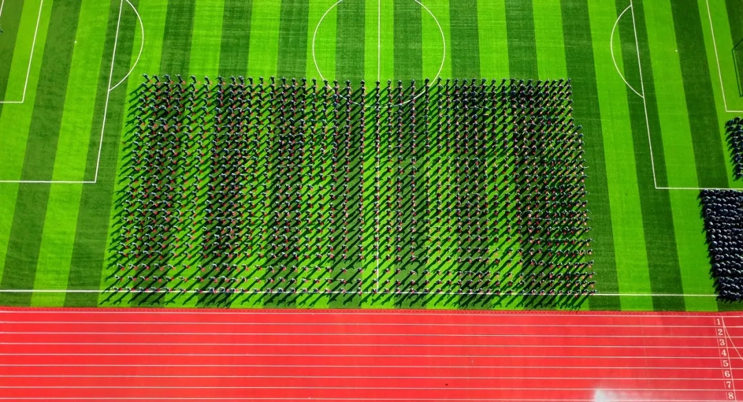 会操现场的新生方阵,摆出“10、9、8、7……”数字、各种图形图案、“广西自然资源职业技术学院”、“我爱中国”等字样,表达了2020级新生对学院的祝福及对祖国的无比热爱。