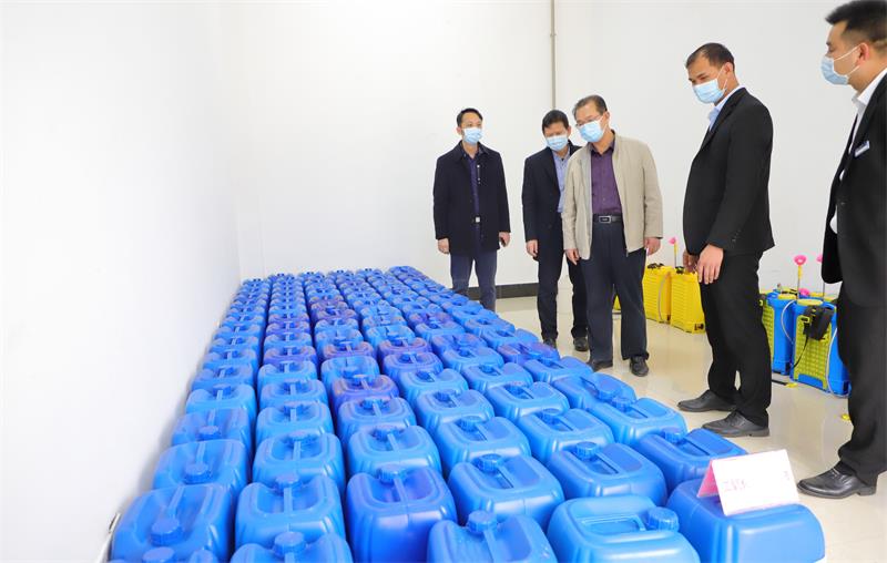 ▲学院党委书记陈朝新及相关陪同人员检查学院防疫物资