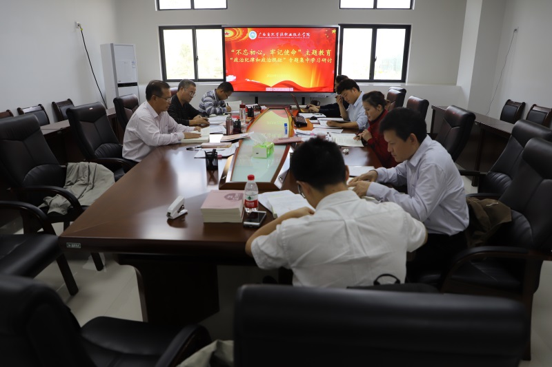 11月25日下午,根据学院“不忘初心、牢记使命”主题教育方案工作安排,学院党委召开“政治纪律和政治规矩”专题学习研讨会。学院党委、各处室(系部)负责人参加了学习研讨会,会议由学院党委书记陈朝新主持。