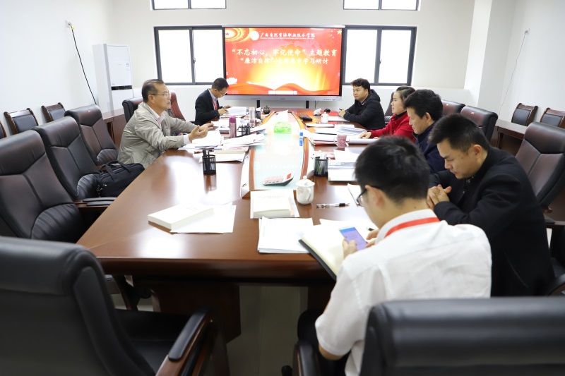 11月26日下午,根据学院“不忘初心、牢记使命”主题教育方案工作安排,学院党委召开“廉洁自律”专题学习研讨会。学院党委、各处室(系部)负责人参加了学习研讨会,会议由学院党委书记陈朝新主持。