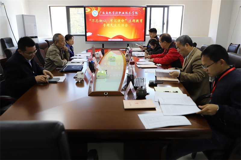 2019年12月11日,广西自然资源职业技术学院“不忘初心、牢记使命”主题教育专题民主生活会在学院行政综合楼三楼会议室召开。厅机关党委专职副书记、主题教育办常务副主任侯宪国等一行3人到会指导。学院临时党支部委员参加会议,会议由学院党委书记陈朝新主持。