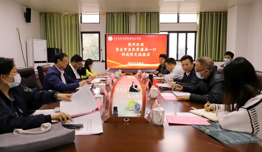 3月30日下午,崇左市自然资源局副局长陈玺率崇左市“留人计划”服务分队一行5人到我院开展调研交流。学院党委委员、副院长宇鹏,有关部门(系部)负责人以及师生代表参加座谈会。