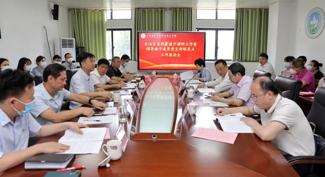 2022年5月18日,由自治区自然资源厅党组副书记、副厅长、一级巡视员谢瑾瑜带队,厅领导班子成员党支部联系点工作组一行,来到学院考察专业建设及基建项目情况,并与学院各党支部举行了工作座谈,进行了以“推动自治区第十二次党代会精神落地见效”为主题的宣讲。