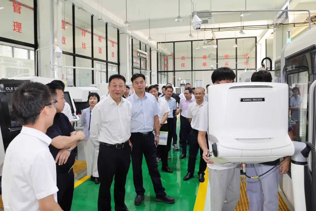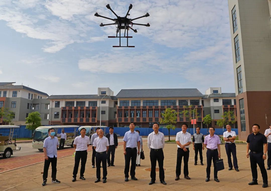 谢瑾瑜一行还调研了学院的无人机培训基地、德玛吉五轴数控机床操作中心、自然资源各实训室、学院大型“云机房”、国家级双创示范基地等专业集群的建设情况。