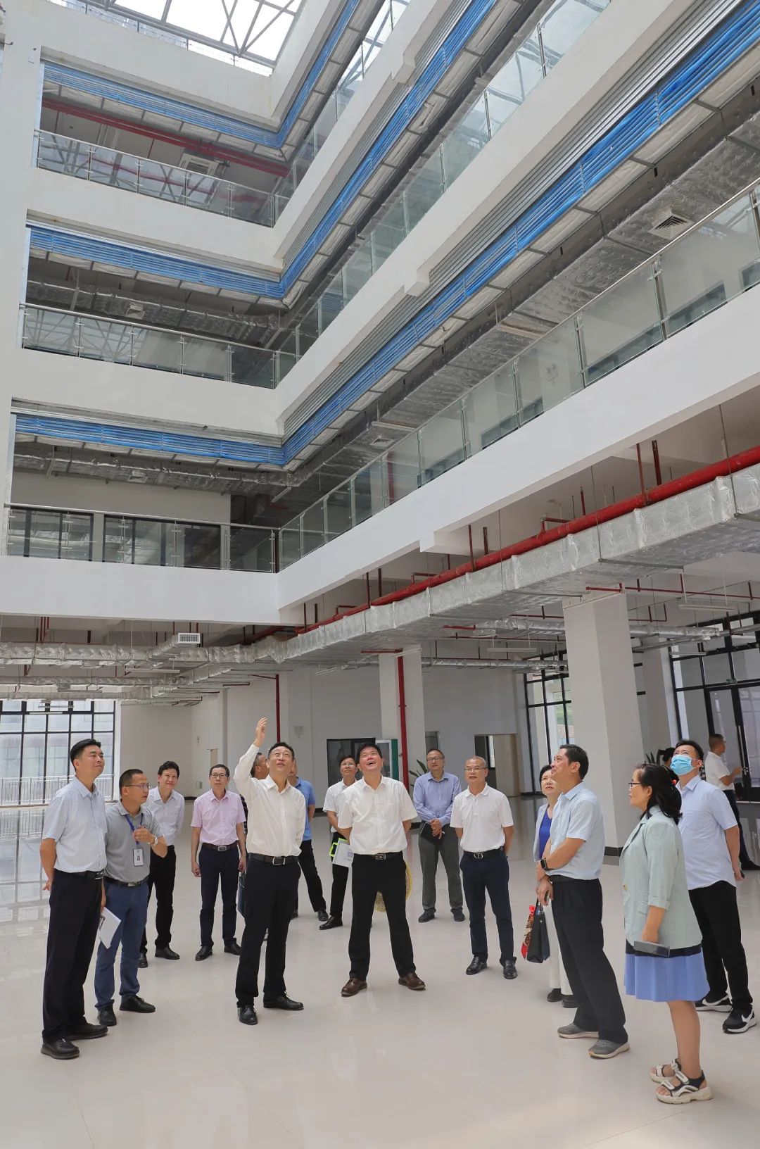 当日,谢瑾瑜一行在学院党委书记成国立、院长冯兵、党委副书记兼纪委书记刘勇、副院长韦绍宁、副院长宇鹏及各处室负责人陪同下,考察了学院一期工程的收尾情况,并实地查看学院二期工程8#学生宿舍楼及配套设施项目的建设进度。