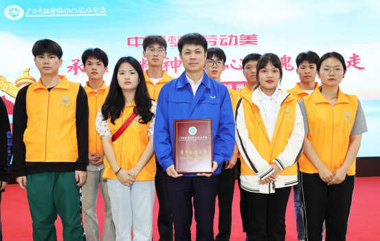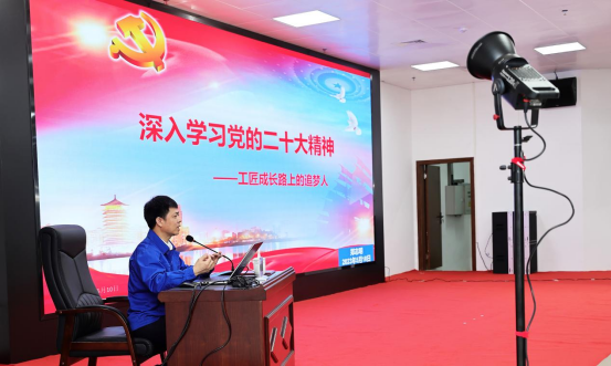 当天的活动中,郑志明向到场的数百名师生,进行了一场名为《深入学习党的二十大精神——工匠成长路上的追梦人》主题宣讲。他以大量的鲜活事例,阐述了自己从业二十六年来,专注地在行业内深耕,持续学习各类高新技能,为迈向“智造强国”征程添砖加瓦,为服务广西智能制造业奉献心力的历程。