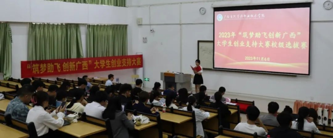2023年11月,为提升学院的创新创业文化,对在校家庭经济困难学生身心发展、道德品质培养、学业帮扶、就业指导等方面,给予更多的关怀和帮助,广西自然资源职业技术学院招生就业中心在1号教学楼108教室举办“筑梦助飞 创新广西”大学生创业支持大赛校级选拔赛。