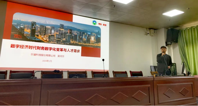 本次活动由多名专业骨干教师和370余名学生共同参与,由职业规划讲座和面试经验分享交流会两个环节组成。职业规划环节特别邀请了校企合作单位——新道科技股份有限公司广西分公司副总经理黄河景以《数字经济时代财务数字化变革与人才需求》为主题开展了一堂精彩的职业规划讲座。在面试经验分享交流会上,大数据与会计专业团队负责人冯萃萃老师结合多年央企银行工作经历,深入浅出地与学生分享工作经验,为同学们可能遇到的问题提前给予建议,打好“预防针”。