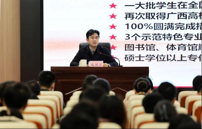 今年是新中国成立75周年,也是学院“十四五”规划建设的关键之年。学院将以新学期“开学第一课”为抓手,激励引导广大师生在以习近平同志为核心的党中央坚强领导下,以党的二十大精神为指引,深入贯彻落实习近平总书记对广西重大方略要求,实干奋进,用实际行动践行“请党放心,强国有我”的铿锵誓言,全力以赴完成年度目标任务,奋力谱写中国式现代化广西篇章,建设新时代的壮美广西,为国家强盛、民族复兴添砖加瓦、增光添彩。