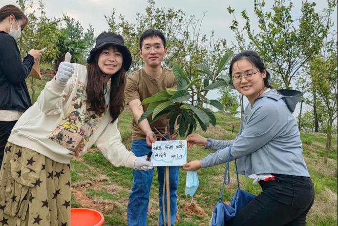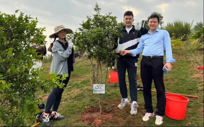 植树活动中,有人铲土,有人扶树,有人培土……大家3人一组,分工协作,合力种下一棵树苗,现场一派火热朝天的劳动景象,不一会儿,一棵棵挺立起来的芒果树、嘉宝树、琵琶树、柠檬树成了一片“绿树林”,为周边增添不少生机。