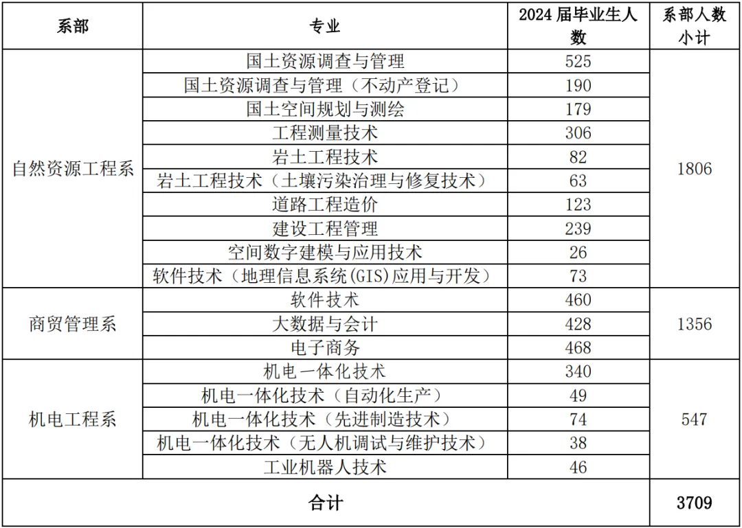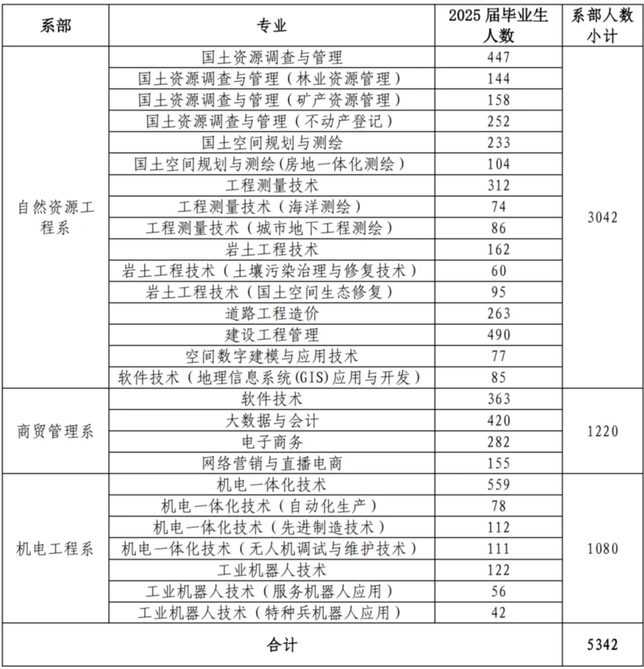 我校2024届大专毕业生共有3709人、2025届大专毕业生共有5342人,两届毕业生涵盖自然资源、商贸管理、机电等专业大类。为全面贯彻党中央、国务院关于“稳就业”“保就业”的决策部署,更好地搭建用人单位与毕业生之间双向选择的平台,实现毕业生充分就业,进一步提高校企合作水平,提升学生就业质量,学院定于2024年5月31日举办2024届毕业生暨2025届实习生校园双选会,诚挚邀请贵单位前来我院选聘毕业生。现将双选会有关事宜说明如下: