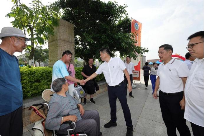 (学院领导与一位举家从青海省来到广西的新生聊家常)
