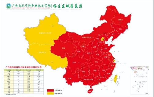 截止到2024年9月,广西自然资源职业技术学院招生范围,基本已覆盖了全国大部分省区、直辖市。