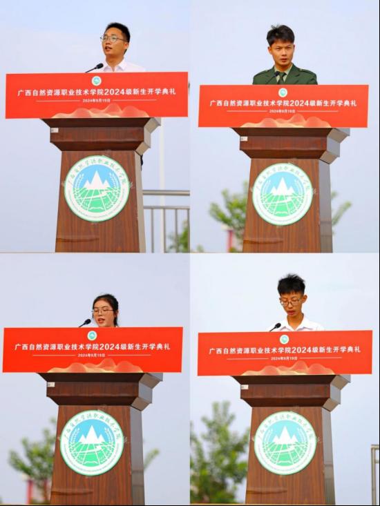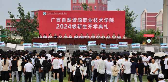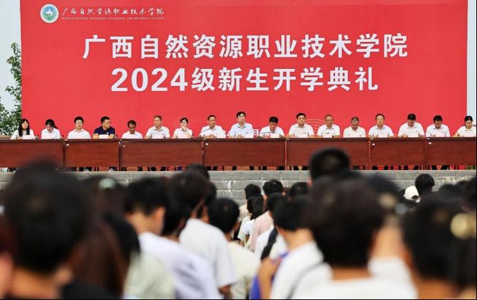 2024年9月19日上午,广西自然资源职业技术学院举行了2024级新生开学典礼。学院党委书记成国立,党委副书记、院长冯兵,党委副书记、副院长刘勇,党委委员、纪委书记莫文希等出席典礼。各部门负责人、教职工代表和2024级全体新生参加了当天活动。典礼由刘勇主持。