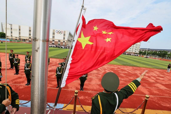典礼伊始,学院大学生国旗护卫队升起了鲜艳的五星红旗。开学典礼在庄严的国歌声中拉开帷幕。