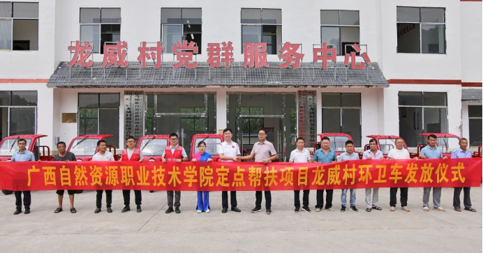 2024年9月27日,广西自然资源职业技术学院党委书记成国立带队,赴巴马瑶族自治县燕洞镇龙威村进行乡村振兴实地调研,代表学院党委、行政,探望慰问了学院派驻该村的乡村振兴工作队队员,并以“定点定向帮扶”方式,向该村捐赠了一批用以收纳清运生活垃圾的环卫车辆。
