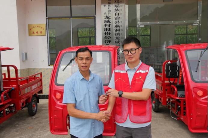 (学院驻村工作队发放环卫车辆钥匙)