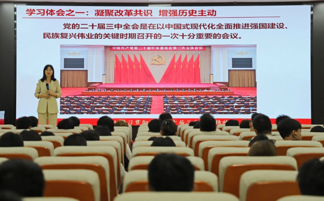 为深入学习宣传贯彻党的二十届三中全会精神,引导师生切实把思想和行动统一到全会精神上来,2024年9月26日,广西自然资源职业技术学院邀请自治区党委讲师团特聘教授、广西民族大学思政课教学创新中心主任、发展规划处处长陈媛教授,作党的二十届三中全会精神宣讲。