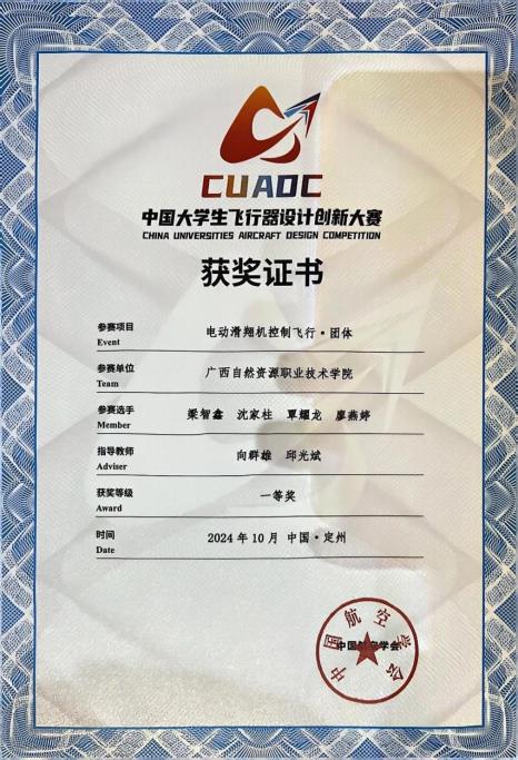 上述荣誉的取得,既体现了选手们的拼搏精神,更是广西自然资源职业技术学院人才培养与学科建设的成功实践的成果,是学院在低空经济领域的创新能力和技术实力的具体体现。