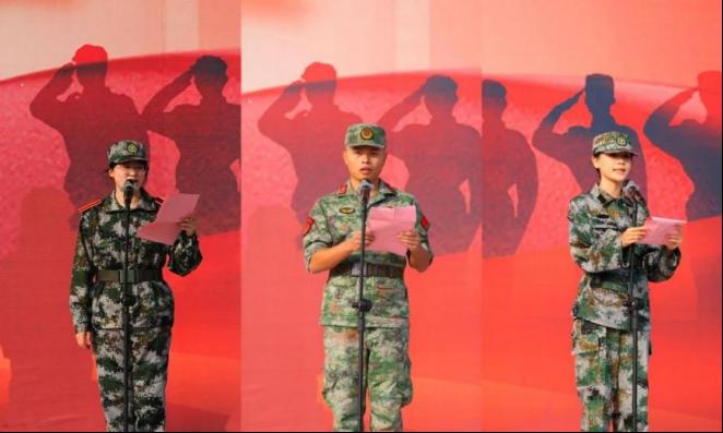 商贸管理系2024级大数据与会计6班尹泽欧代表全体参训学生郑重承诺:在军训中将服从命令,听从指挥,养成高度自觉的纪律意识;敢于吃苦,超越自我,锤炼磨砺自我的顽强品格;团结互助,共创佳绩,展现广自学子的英姿与风采。