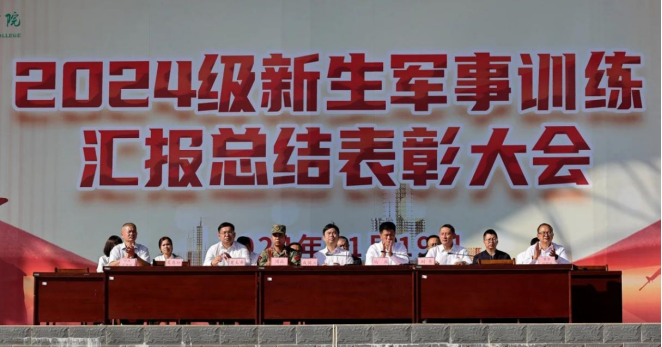 2024年11月19日,广西自然资源职业技术学院2024级新生军事训练汇报总结表彰大会在军训现场举行。学院党委书记成国立,学院党委副书记、院长冯兵,学院党委副书记、副院长刘勇,学院纪委书记莫文希、崇左军分区代表周磊等出席大会。大会由刘勇主持。