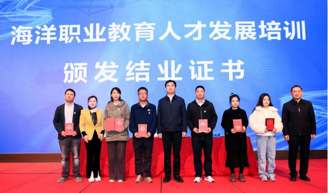 12月25日上午,海洋职业教育人才发展培训班举行了结业仪式,学院党委书记成国立,党委副书记、副院长刘勇,党委委员、宣传部长(兼)、党政办副主任吴惠琼,为学员颁发了结业证书。成国立在发言中,向学员们顺利结业表示了衷心祝贺,并勉励学员们学以致用,努力推动广西海洋经济的高质量发展,贡献智慧与才能。结业仪式由刘勇主持。