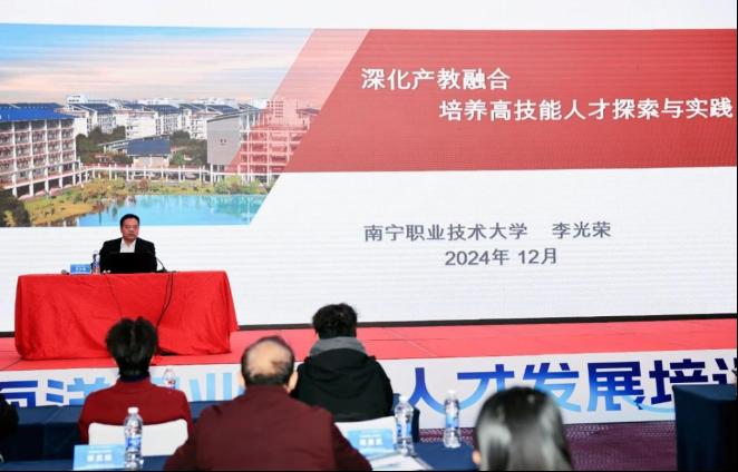 2024年12月24日-25日,海洋职业教育人才发展培训班在南宁举办,自治区海洋局副局长宁向军出席活动并致辞。全区涉海部门、科研院所、大中专院校、涉海企业和社团组织等单位共计100余名代表参加活动。学院党委书记成国立致欢迎辞,培训班开幕式由学院党委副书记、院长冯兵主持。