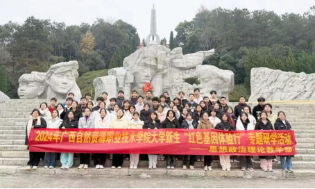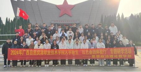 为深入实施时代新人铸魂工程,运用好传承好红色基因,推动党史学习教育常态化长效化,积极响应《教育部办公厅等四部门关于开展全国高校“传承红色基因、学思践悟中国共产党人精神谱系”宣传教育的通知》和《自治区教育厅关于开展全区高校大学新生“红色基因体验行”专题研学活动的通知》文件精神。2024年12月24日至26日,广西自然资源职业技术学院组织了7名教师及60名自然资源系统定向培养专业的学生,开展了一场为期3天2晚的专题研学活动,深入体验红色文化,同时结合专业特色,探索“红+绿”教育模式,厚植学生的爱国情怀和专业素养。