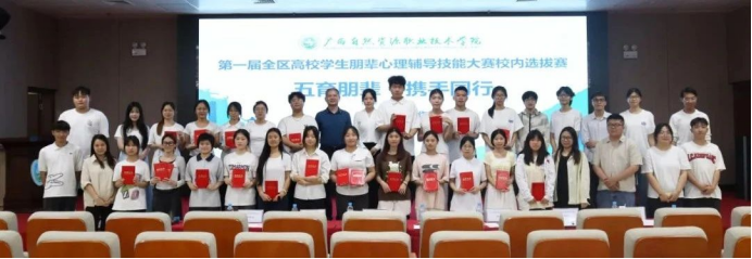 为深入贯彻落实党的二十大精神,进一步加强学院大学生心理健康教育工作实效性。2025年4月24日学院围绕“五育朋辈 携手同行”主题,在图书馆报告厅举行首届全区高校学生朋辈心理辅导技能大赛校内选拔赛,学院党委副书记、副院长刘勇出席并讲话,党委学生工作处、心理健康教育与咨询中心相关负责人出席活动。