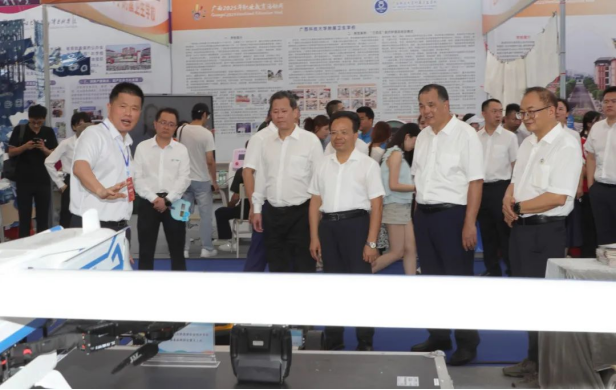 展会期间,自治区教育厅副厅长伍锦昌(中)及行业专家莅临学院展区,对所展出的技术设备和人才培养成果,给予高度评价,认为学院在“职业教育与社会服务协同创新”方面树立了典范。