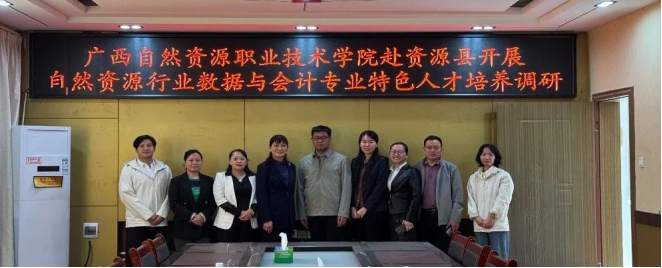 2025年4月中旬,广西自然资源职业技术学院财务处处长吴劲梅、商贸管理系财税金融融创团队召集人冯萃萃,与合作企业---广西鑫诚达财税集团有限责任公司董事长莫海玲等一行六人,前往资源县自然资源局及资源县资源镇人民政府,开展“自然资源行业大数据与会计专业特色人才培养与就业需求”专题调研,以精准对接行业需求,优化专业人才培养体系。