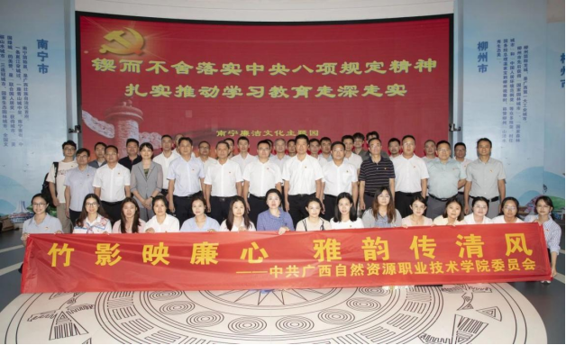 为深入贯彻中央八项规定精神,扎实推进清廉学院建设,2025年5月30日下午,广西自然资源职业技术学院党委组织47名党员干部,赴南宁市廉洁文化主题园开展“竹影映廉心 雅韵传清风”主题教育活动,旨在引导党员干部崇廉尚廉,筑牢拒腐防变思想防线。