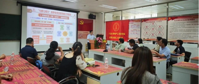 南宁职业技术大学“全国党建工作样板支部”书记黄小钊就如何做好高校党支部建设进行经验分享,对高校基层支部班子选配、党员培养教育、支部作用发挥、活动场所建设等方面的具体举措,提出可行性意见,为学院各基层党支部打造专业特色党建品牌提供了专业的指导。
