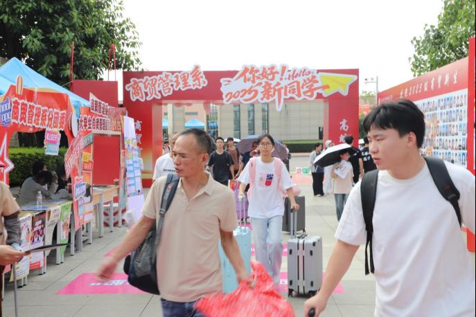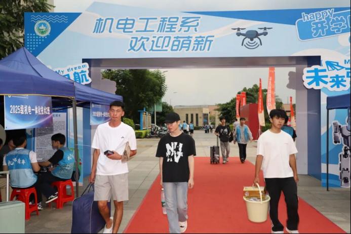 本次迎接新生,广西自然资源职业技术学院提供了6辆中巴车、10辆电瓶车,保障校内接驳点高效运转,运送新生及家长到宿舍区,实现当日安全转运学生及家长9000多人次,全力保障新生报到全流程的顺畅。