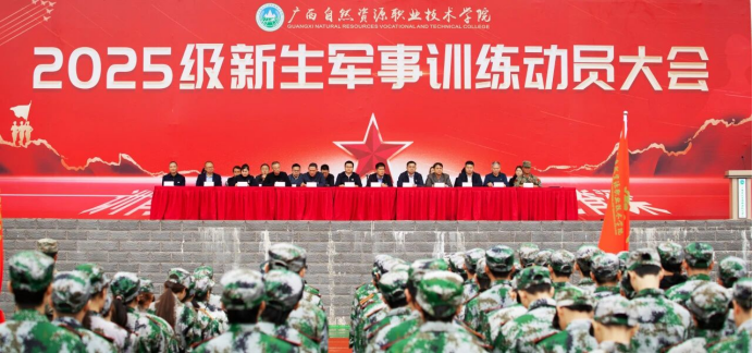 2025年11月5日上午,广西自然资源职业技术学院在学校运动场隆重举行2025级新生军事训练动员大会。