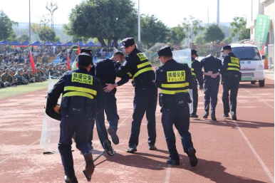 反恐防暴演练环节,模拟了“暴徒”突袭校园的场面,学院安保队伍反应迅速、处置专业,与师生协同配合,顺利完成预警、疏散、管控等关键环节,有效检验了校园突发暴力事件的联动处置能力。