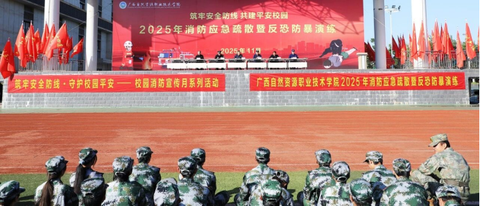 为强化校园安全管理,提升师生应急处置与自救互救能力,11月13日,广西自然资源职业技术学院举行2025年消防应急疏散暨反恐防暴演练。