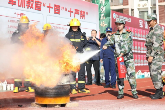 随后的灭火器使用演练中,消防救援队员现场示范“提、拔、握、压”操作方法及安全注意事项,同学们分组实操体验,提升应对突发消防意外时的灭火应对能力。