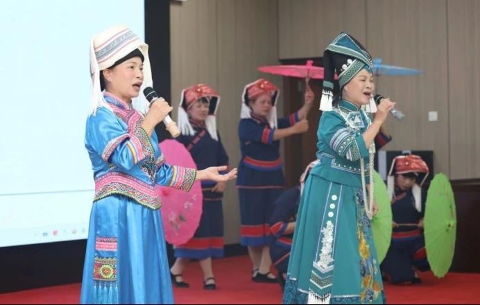 在本次宣讲活动的互动交流环节中,同学们就采茶剧的艺术特点、非遗传承的未来路径等话题,向姚文老师提问,姚文老师一一详细给予了解答。姚文的团队还现场演绎《壮族采茶剧》经典片段,将活动推向高潮,用粤语白话演绎的唱词、融合壮乡风情的曲调,搭配扬琴、高胡等传统乐器的伴奏,直观地向大家展示了民族戏曲的独特感染力。