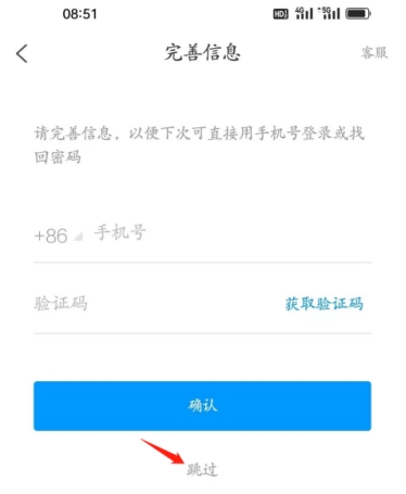 第三步:绑定手机号(此步骤可选择跳过)