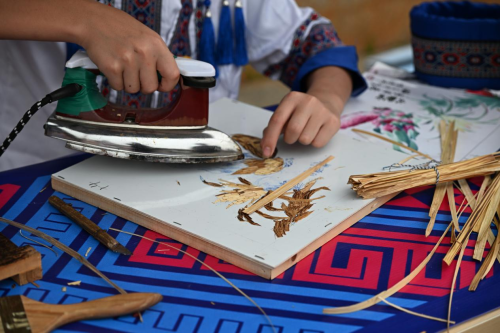 活动现场“桂味”十足。在学院科技广场,身着民族服饰的广自青年和少先队员通过歌舞表演的形式推动“党团队一体化育人链条”,为观众带来了一场沉浸式民俗文化视听盛宴。各族师生共同体验制漆扇、稻秆画、织绣球、非遗拓印等民俗趣味游戏,品尝民族特色美食,参与抛绣球、板鞋、竹竿舞、舞龙舞狮等民族体育项目,让民族文化以更贴近当代语境的形态浸润校园。