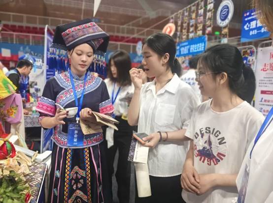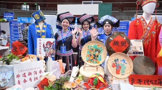 • 项目展示区人气爆棚:项目通过展示壮族采茶剧跨界作品、采茶非遗服装、传统乐器等静态展品与酸粥制作体验、采茶剧唱腔展示、壮锦/漆扇工艺演示等动态互动相结合,立体呈现非遗文化创新成果;