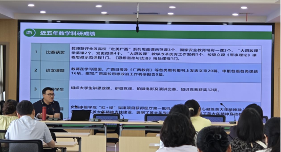 随后,部门融创管理团队的两位老师依次进行工作部署。团队召集人黄丽琦围绕合格评估与课程建设两个方面进行通报,一是在合格评估方面,具体介绍了部门承担的重要任务,重点从思政课建设、“三全育人”等关键指标进行了说明。针对当前存在的材料缺失问题,黄丽琦提出了明确的整改要求,并鼓励教师之间积极开展互评互学活动,强化责任意识,注重细节把控,确保教学评估工作高质量完成。二是在课程建设方面,黄丽琦明确了三个教学小组的具体任务,详细介绍了“大思政”队伍管理办法及考核机制。期待大家通力合作,推动思政课程建设不断向纵深发展。