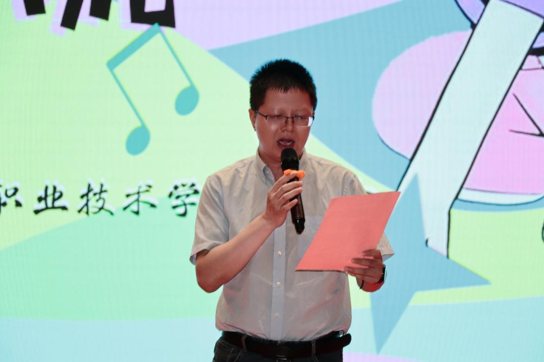 随后,商贸管理系党支部书记、系主任李斌上台致辞。他表达了对选手们的鼓励与期望,并希望全体同学在音乐的陪伴下,勇敢追逐梦想。