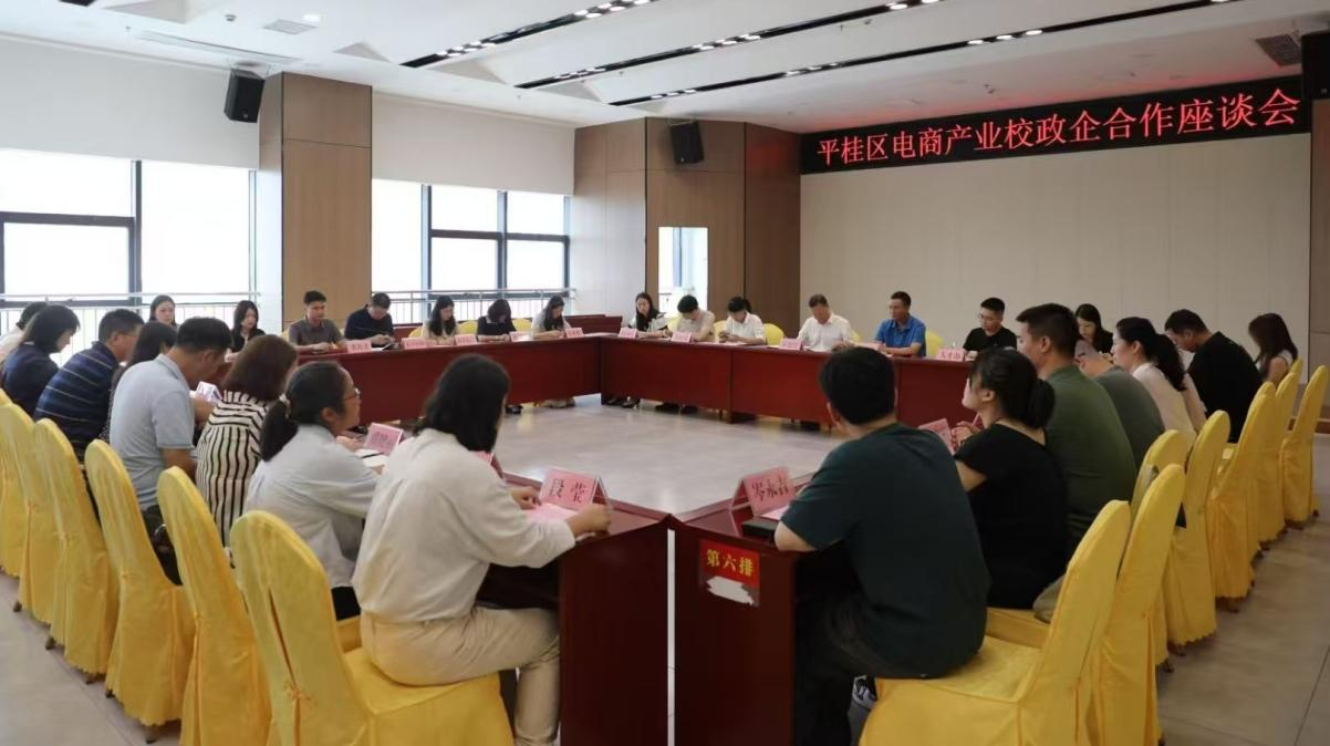 为深入贯彻落实教育部关于“访企拓岗促就业”专项行动的要求,深化校企合作,拓宽毕业生就业渠道,6月10日,广西自然资源职业技术学院商贸管理系主任李斌带队,赴贺州市平桂区参加电商产业政校企合作座谈会,与当地政府部门、企业代表共同探讨产教融合、人才培养与就业合作新模式。会议由平桂区委、区人社局联合主办,平桂区委书记朱建军,区人社局局长廖娥珍,广西黄金珠宝产业园相关领导,广西自然资源职业技术学院等5所区内高职院校代表,南宁百萃信息科技有限公司、广西桂黄金品牌管理有限公司等10余家重点企业负责人出席会议。