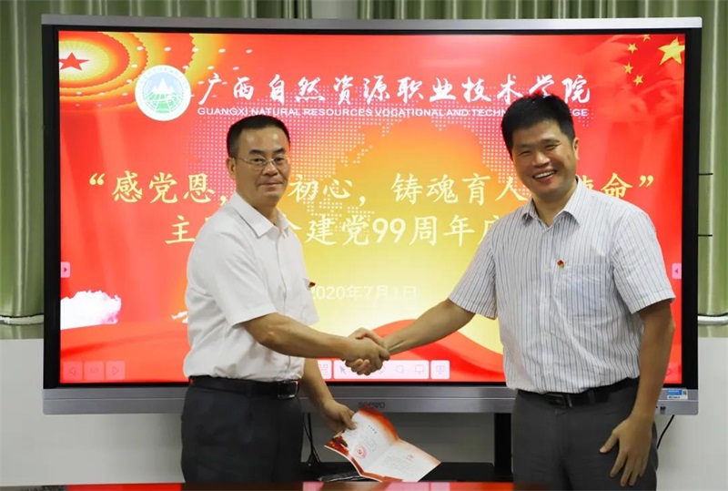 7月1日下午,广西自然资源职业技术学院召开“感党恩,话初心,铸魂育人担使命”主题庆祝建党99周年座谈会议,院长冯兵、副院长韦绍宁出席座谈会并讲话,学院党员代表共计30余人参加座谈会。